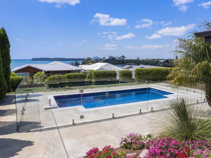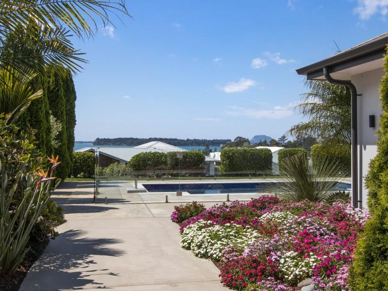 The grounds are practically landscaped and low maintenance while being beautifully planted with some exquisite specimens. The wow factor is the stylish in ground pool and entertaining area that brings a bit of Bel Air glamour to the Bay of Plenty. Set in an elevated position with views over the harbour to the Mount affording privacy and exclusivity that is truly rare.