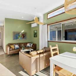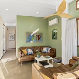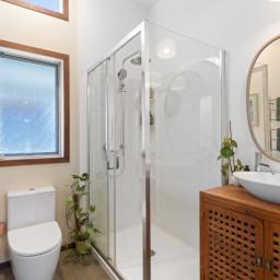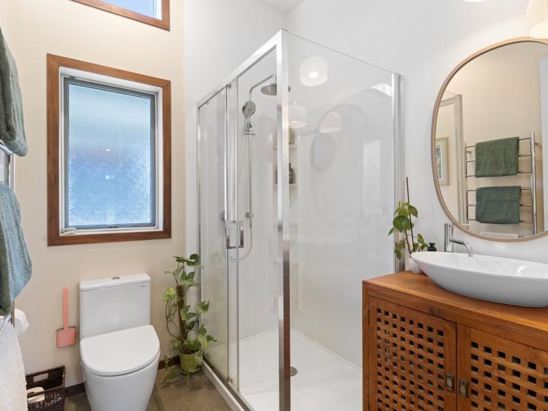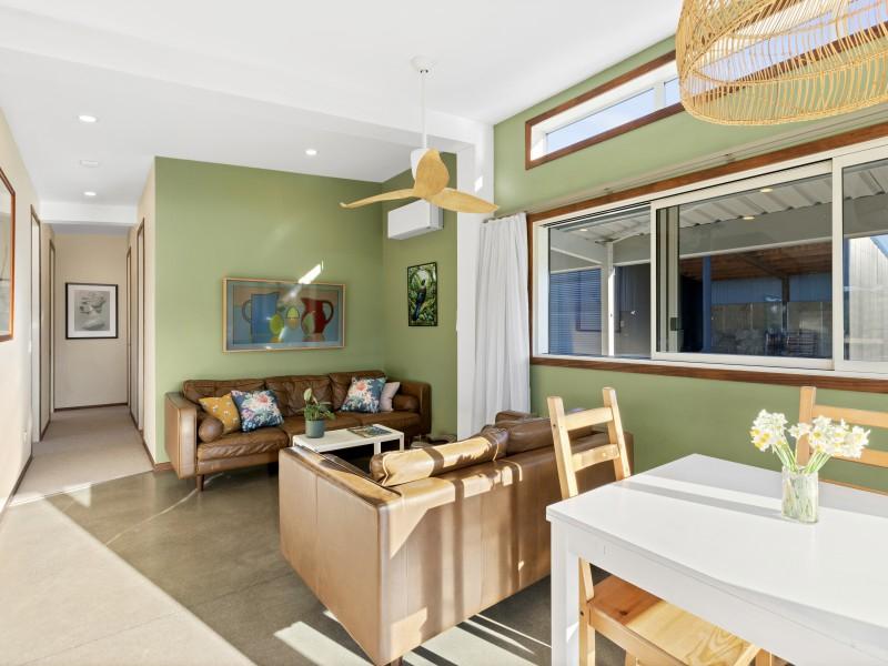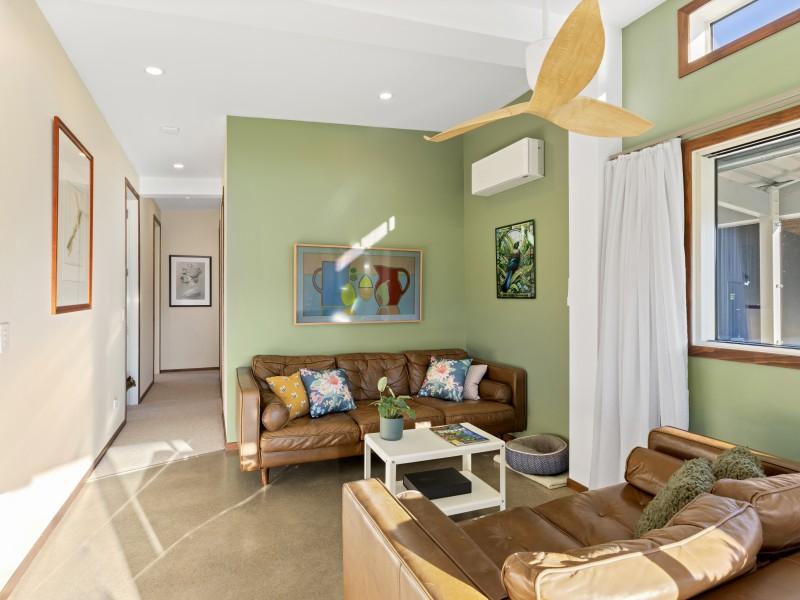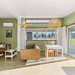 There are two well-appointed bedrooms, including a master that opens directly to a covered patio with front-row mountain views. The bathroom is stunning, the polished concrete floors continue to flow, fitted with a ceiling panel heater and finished with quality throughout.