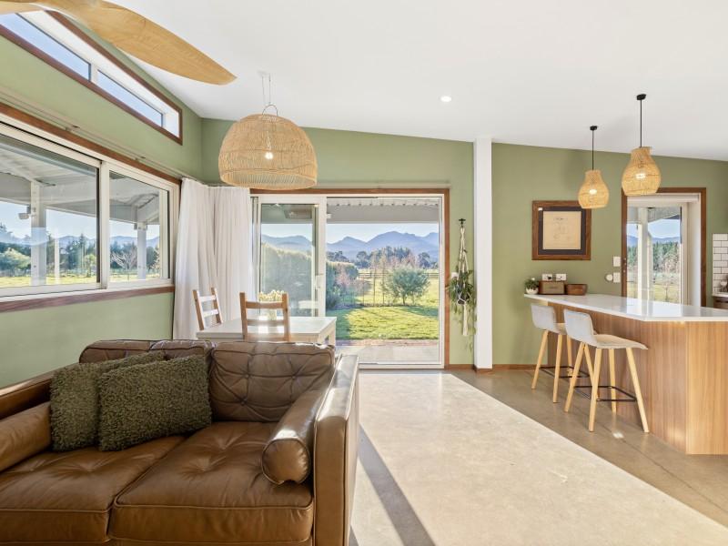 Storage and practicality are taken care of with an internal access double garage, plus a separate five-bay shed (two enclosed) and a brilliant workshop warmed by a pellet fire. Ideal for projects, business or extra storage. The paddocks are perfect for grazing sheep or developing further lifestyle options.