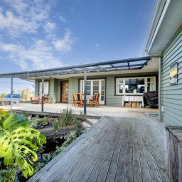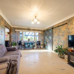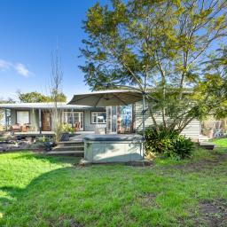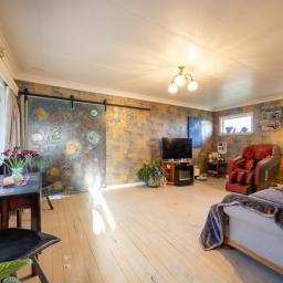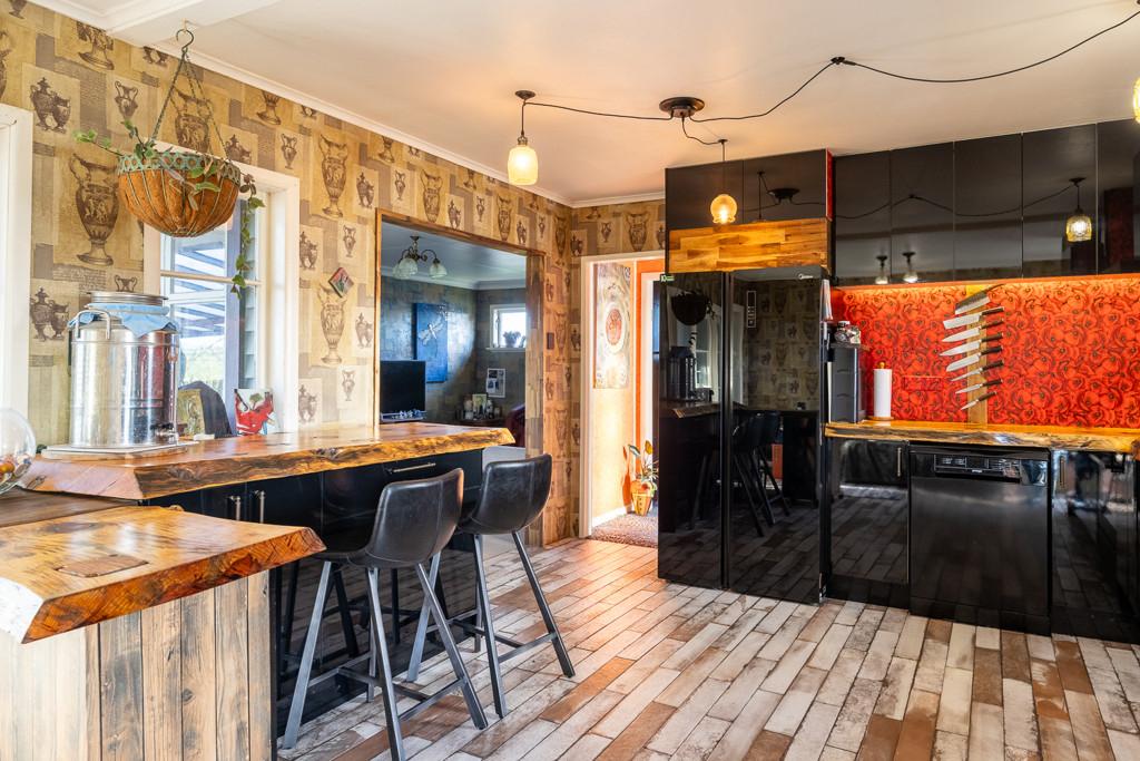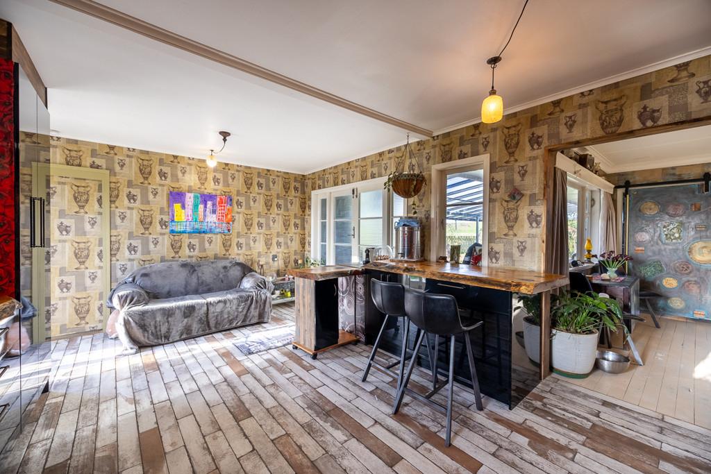 This 3-bedroom home with an office and decks galore will surprise you around every turn. Set on approximately 2 ha is the lifestyle with a difference. The amazing kitchen is open plan and larger than life, a stone floor bathroom with amazing lighting, and the artists own designer window, every room has a special touch. The master bedroom has a walk-through wardrobe and external door to outside spa. There are also two other large bedrooms with unique decor as well as an office or smaller bedroom.