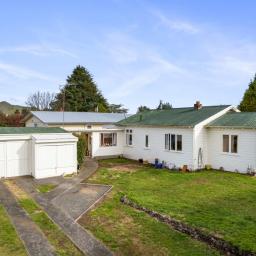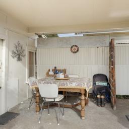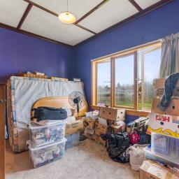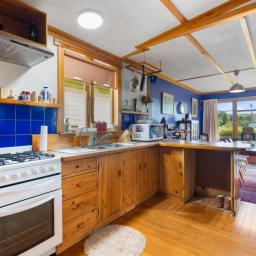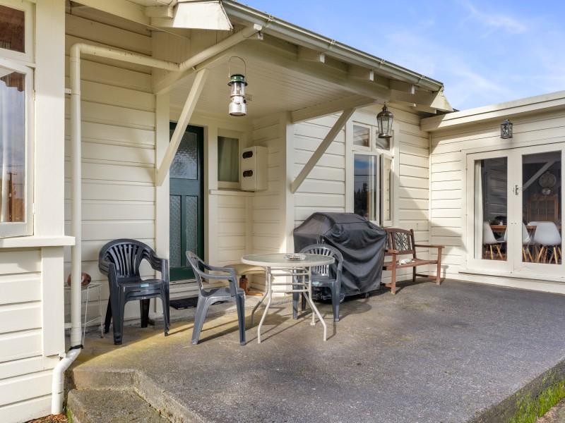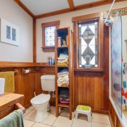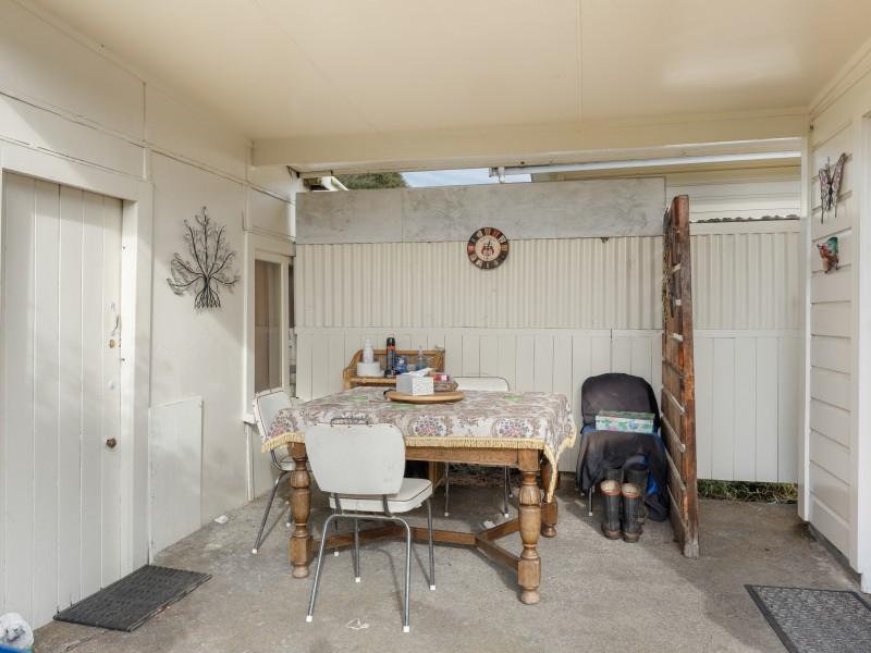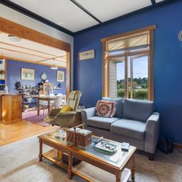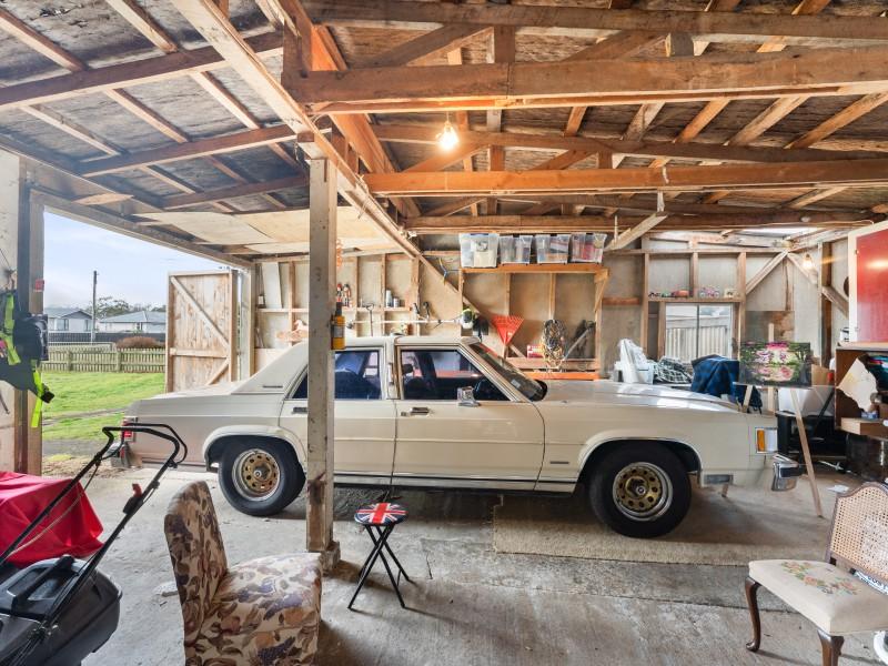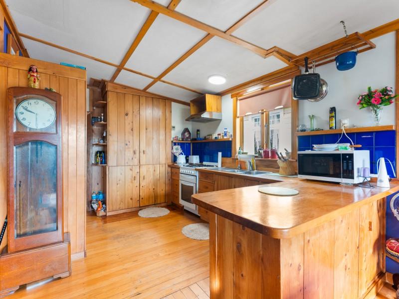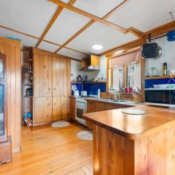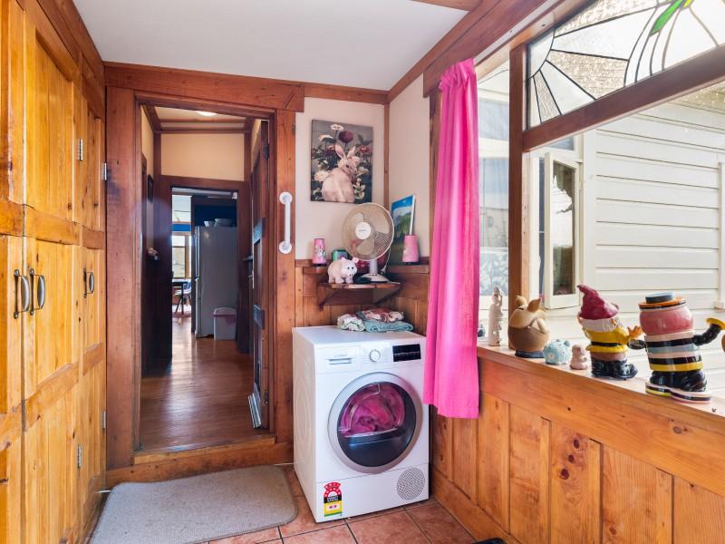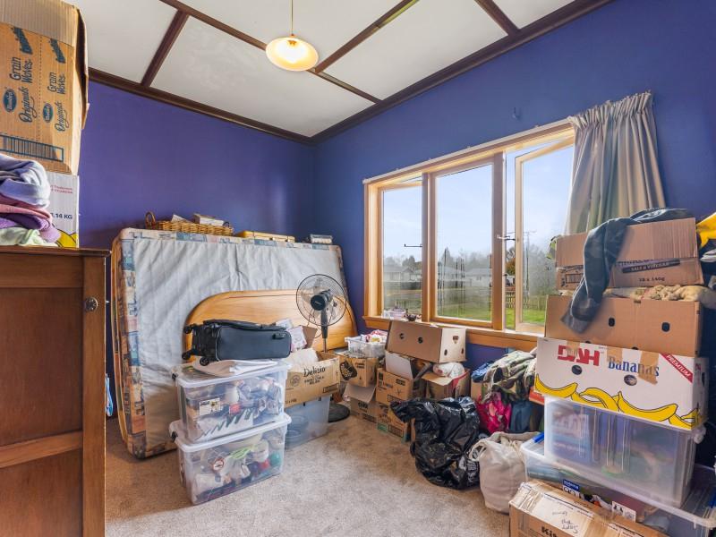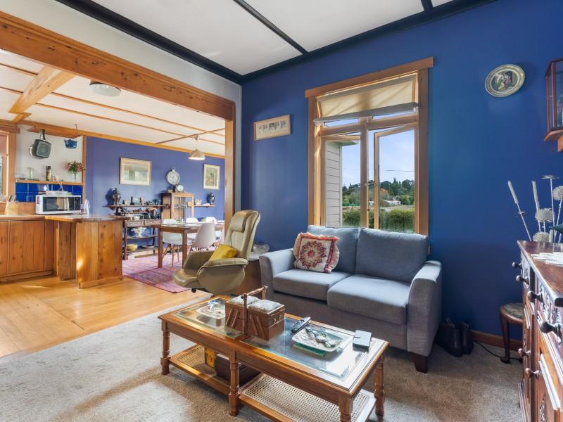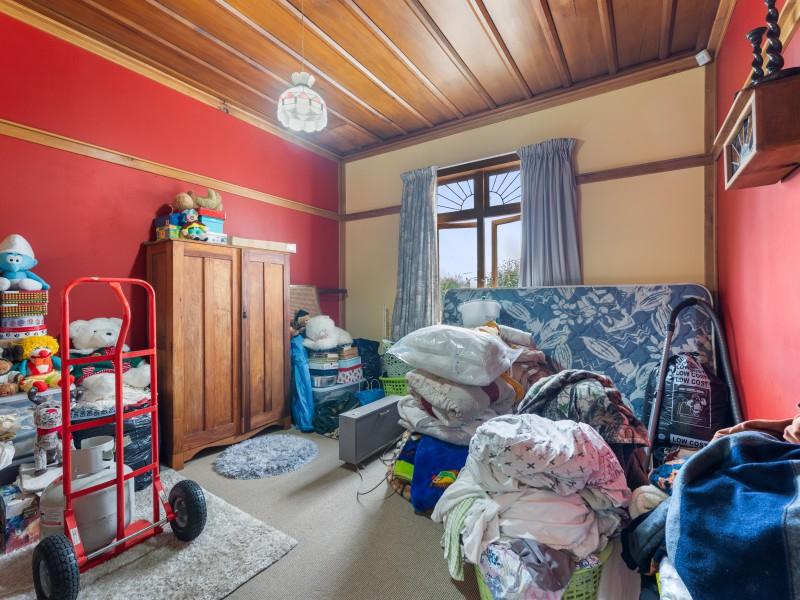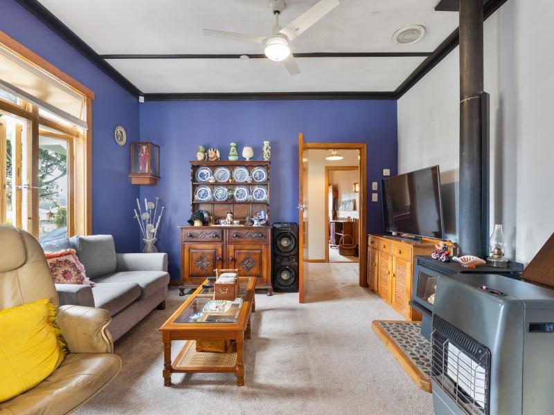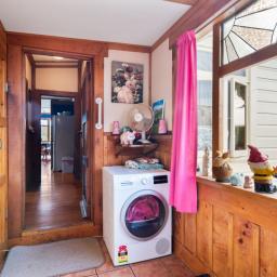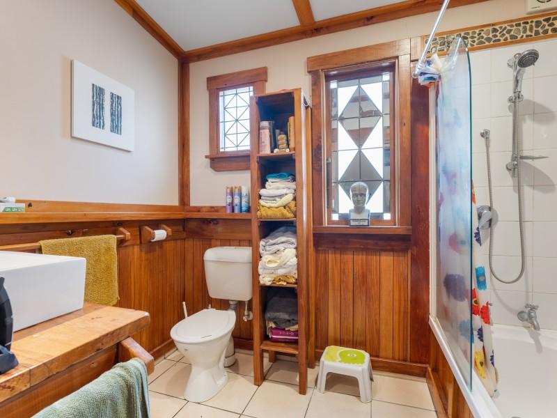 Set on a classic quarter-acre section, you’ve got four big bedrooms (two of which are currently being used as storage), or alternatively three bedrooms and a gorgeous sunroom, a cosy living area with a dedicated dining room with a view, and two rustic bathrooms with timber finishes. There’s timber flooring and relatively new lush carpet underfoot, high ceilings overhead, and just enough vintage character to make things interesting.