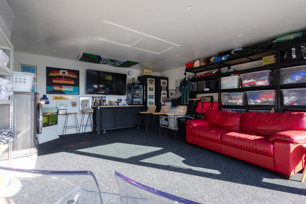At the rear of the property, you’ll find a highly versatile space featuring a garage that has been thoughtfully designed to serve multiple functions. This area can effortlessly transform into a stylish lounge, creating an inviting atmosphere perfect for guest entertainment. Alternatively, it offers flexible potential for a range of additional business uses, whether as extra storage, a workshop, or a unique communal space to enhance the property’s overall appeal and functionality.