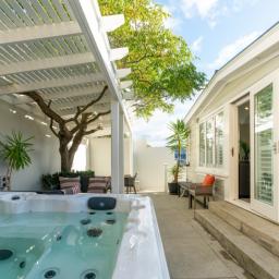 - Large sheltered patio with space for dining, BBQ and a spa pool
