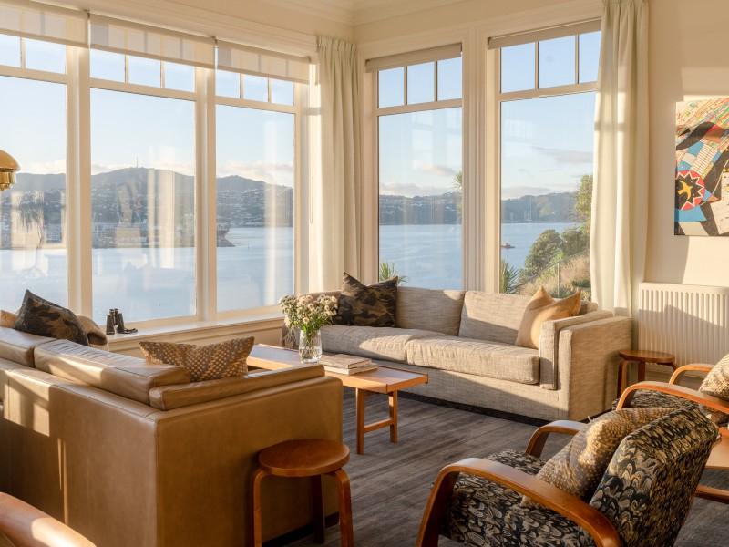 With a stunning 3.3 meter stud height and vast glazing, you'll be impressed by this luxury home in Wellington's dress circle area. The quiet, secure position makes this an ideal 'lock and leave' luxury home, with views that are virtually unmatched this close to the city.