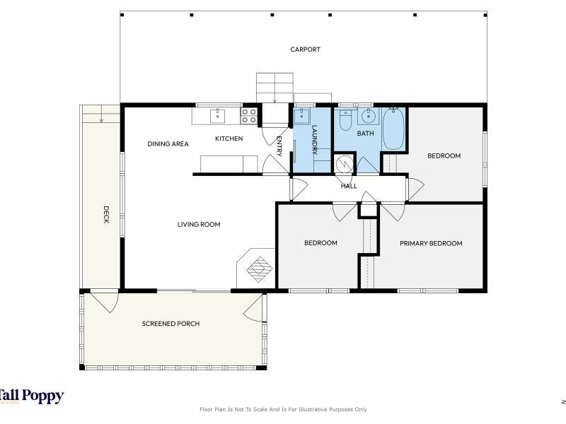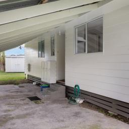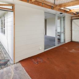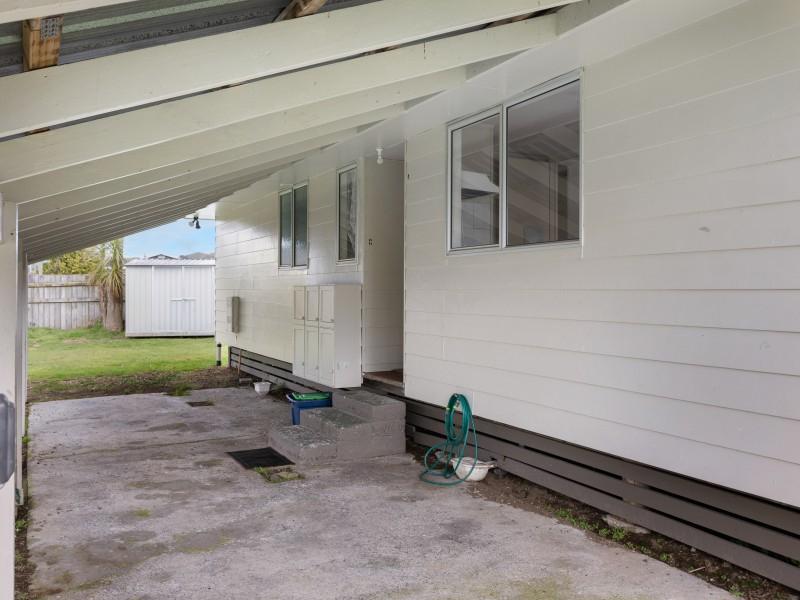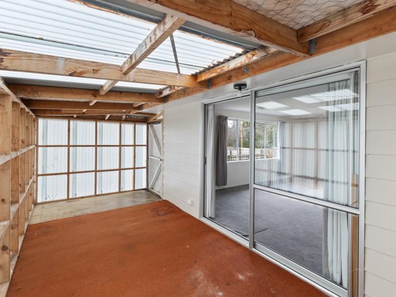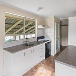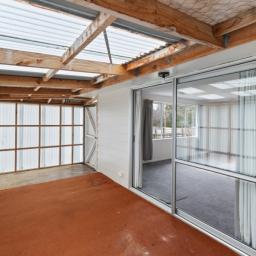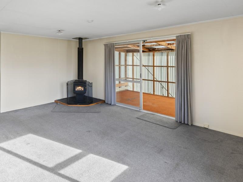 Fully fenced with a large section and an attached carport for ease of unpacking and entry at the back door. As you enter, there is a separate laundry, and a tidy kitchen and dining area. Around the corner is a spacious lounge with a wood burner and sliding doors to a sunroom which has external access. And down the hallway are three bedrooms and the bathroom.