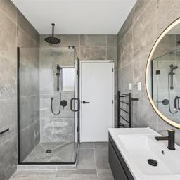 - Heat pump, double glazing, full insulation, and heated towel rails