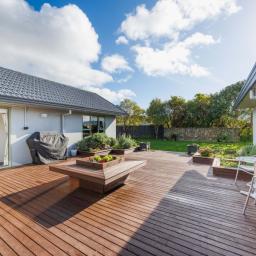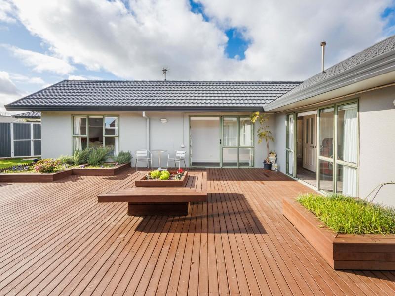 Discover this home where size meets design. With four expansive bedrooms across two wings, the layout accommodates both family life and refined entertaining. The separate lounge is the ideal retreat to relax and recharge. The outdoor deck is centrally positioned and is accessible from both hallways as well as the lounge - what a fabulous design for indoor-outdoor flow. The master suite is located at one wing of the house with a fully tiled ensuite and large walk-in wardrobe. It is generously proportioned and designed for comfort and functionality. The other wing features three double bedrooms with an exquisite bathroom that is fully tiled as well and features bath and shower box, plus a separate toilet.