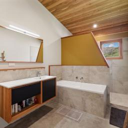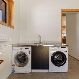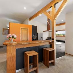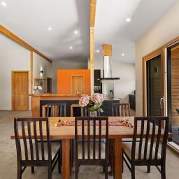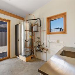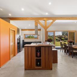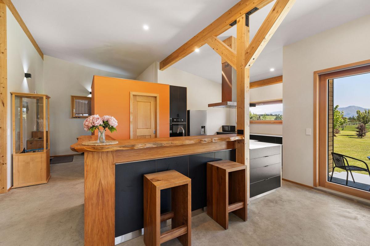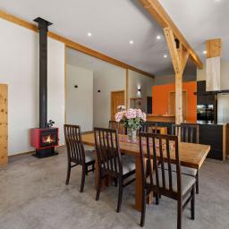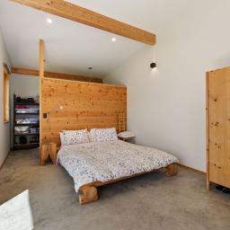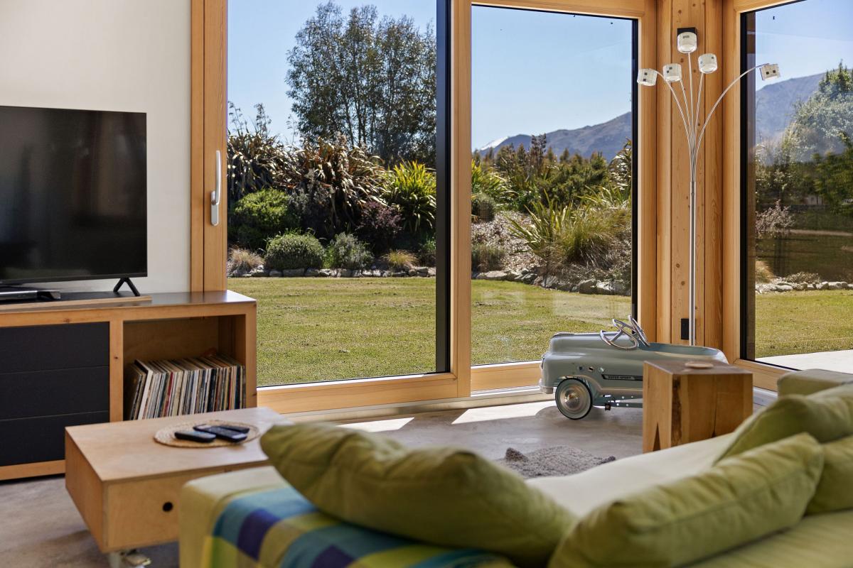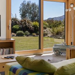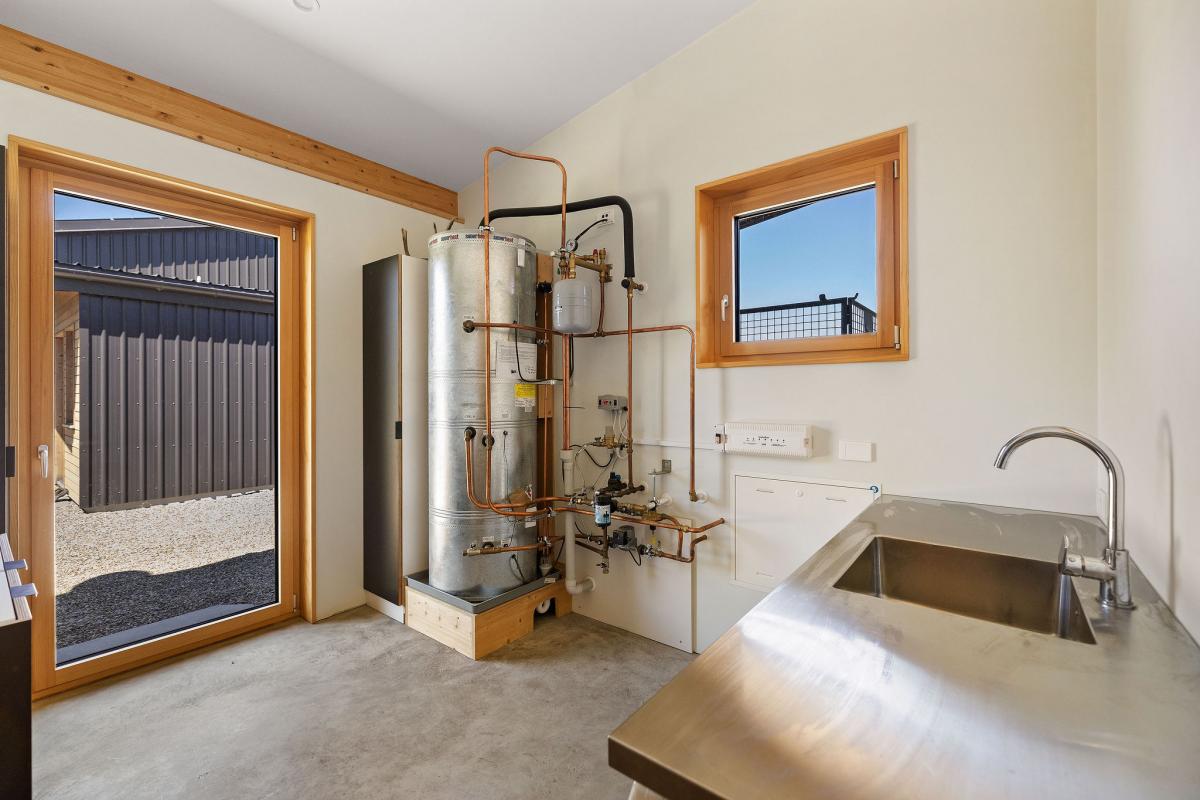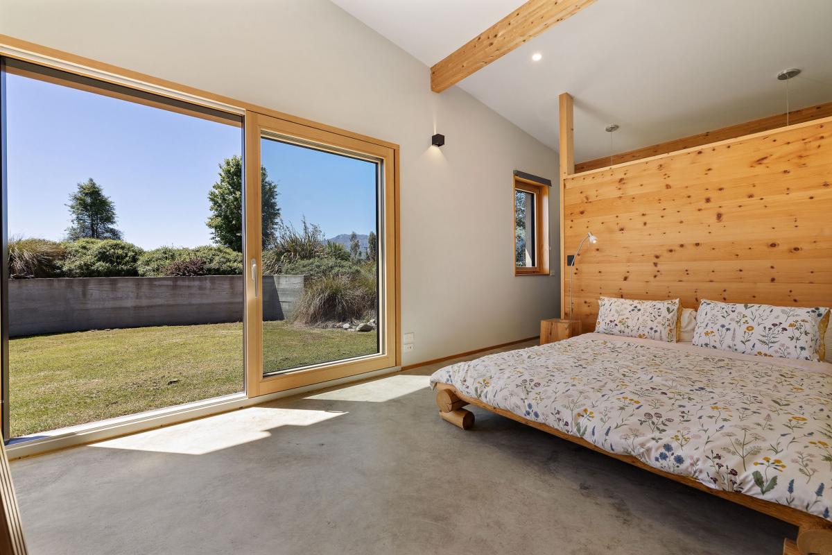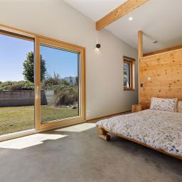 The main house includes four bedrooms and two bathrooms. The open-plan kitchen, dining and living area opens to the west for great afternoon sun and views to the mountains. Designed and built to Northern European performance standards, the home includes triple glazing, R7 insulation in walls and ceiling, and a 200mm thick insulated concrete slab for superior thermal efficiency. Comfort is further enhanced by underfloor heating in both bathrooms, and a woodburner with wetback.