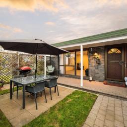 Open plan living area is warm and inviting, featuring a heat pump, ceiling fan, and a window seat, extending to the private front courtyard. Practical kitchen is equipped with a brand-new dishwasher and connects through to the laundry for convenience. A separate dining area adds flexibility for family meals or entertaining.
