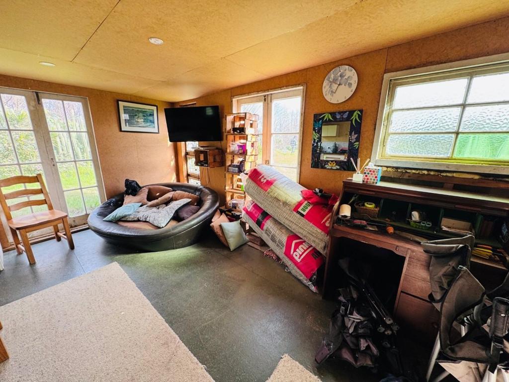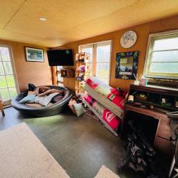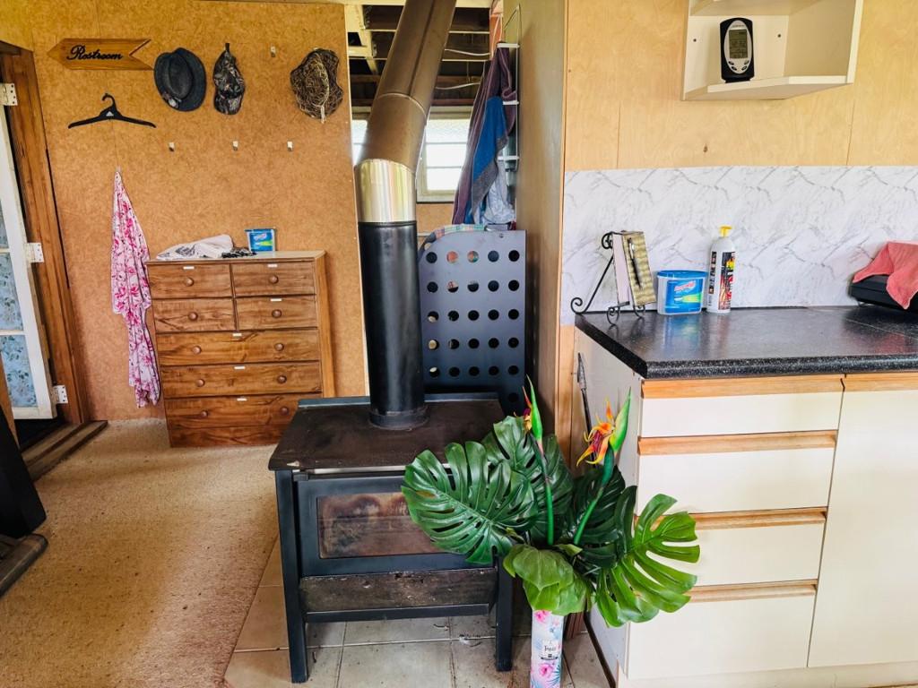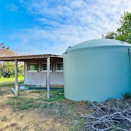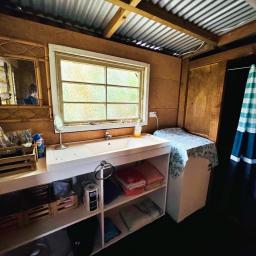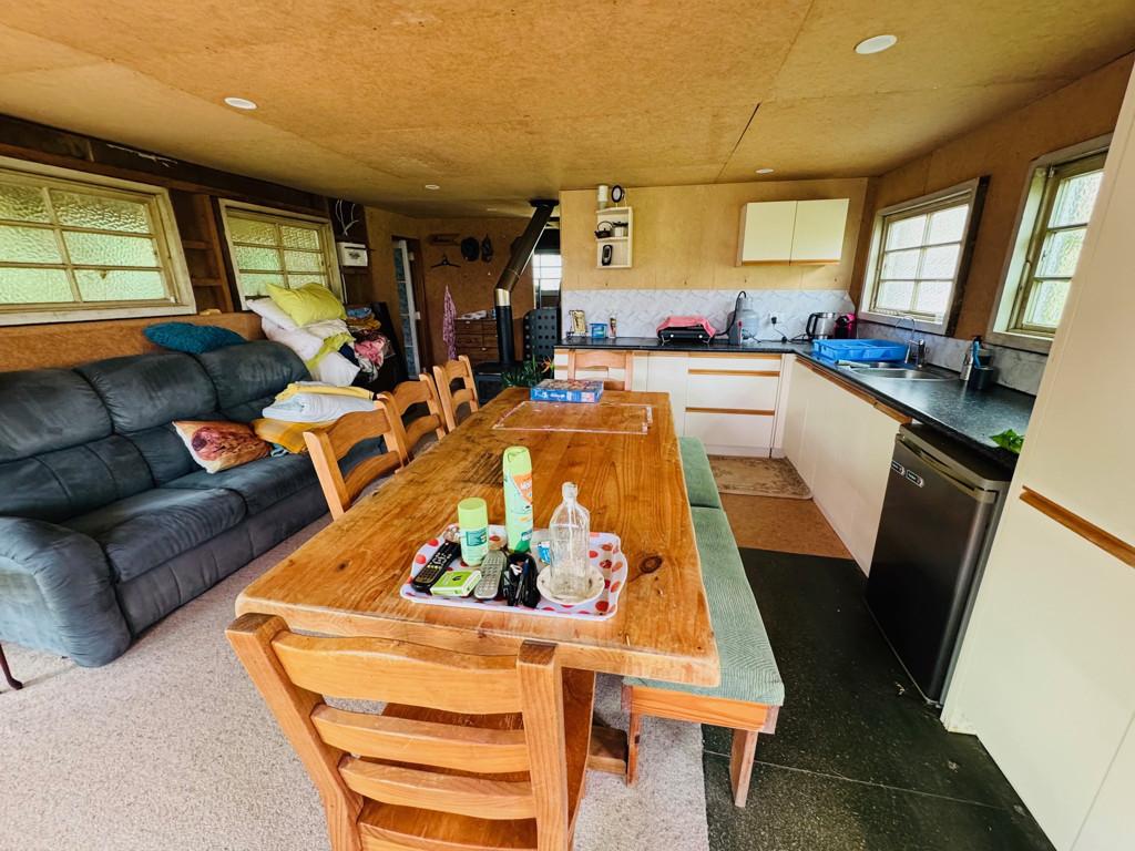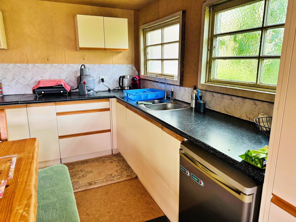 The plywood bach is situated on a sunny, private, level site. Open plan living/dining/kitchen. Double bedroom and bunkroom. Insulated walls and ceiling. Rustic bathroom with shower, vanity and chemical toilet. Well set-up with wood burner, solar power and gas califont hot water, 30k litre plastic water tank with water filter. Newly built carport. Many chattels included.
