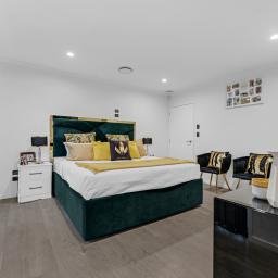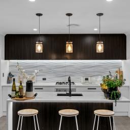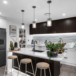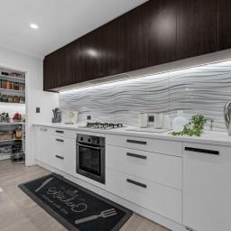 * Designer kitchen with engineered stone benchtop and butler's pantry