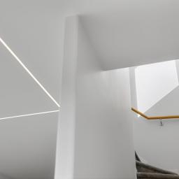 - Bright open-plan living with full-height glazing and LED ceiling strip lighting