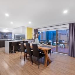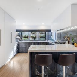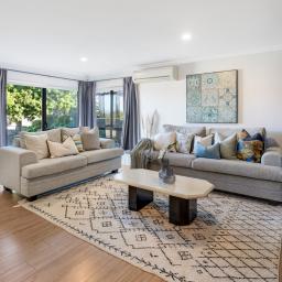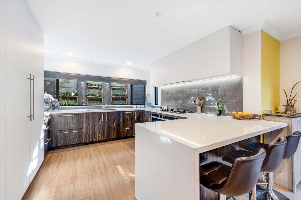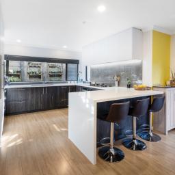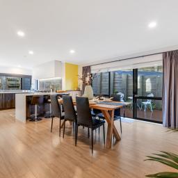 The heart of the home is a near-new designer kitchen, equipped with premium Fisher & Paykel appliances, sleek cabinetry, and ample storage-ideal for both casual family meals and entertaining guests.