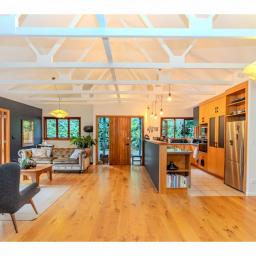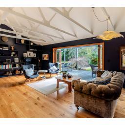 • Open plan living with stunning solid oak flooring and high vaulted ceilings