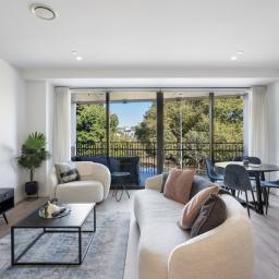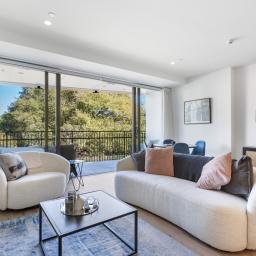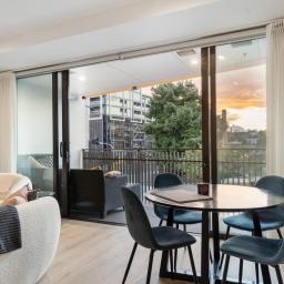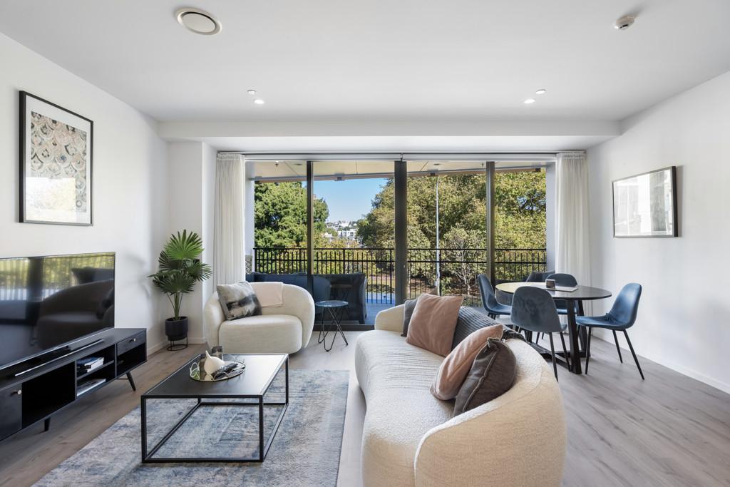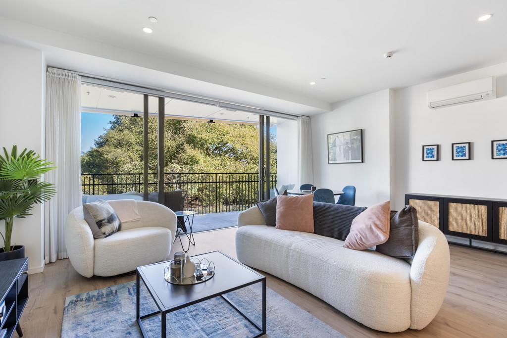 Stylish and sun drenched, this two-bedroom, two-bathroom apartment features open-plan indoor/outdoor living, designed for both relaxation and entertaining. Watch the sunset over the park as you enjoy evening drinks on the covered balcony your perfect setting for al fresco dining or unwinding with friends.