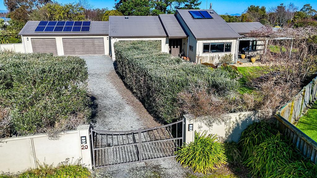 In a very desirable, coveted location 20 Kenwyn Drive sits well back from the road nestled amongst a mature oasis of lovingly nurtured grounds developed over 21 years by its current owners. This spacious four bedroom home enjoys garden views from various vantage points accessing the outdoor patios for the entertainer. Fabulous open plan living, dining with large social kitchen featuring breakfast bar a popular place for friends and family to congregate. Wood burner and heat pump effectively warm this space. Main entrance foyer leads you through to the large master bedroom with ensuite which is tiled and heated underfloor for those winter months. A further three bedrooms one currently utilised as an office share a central bathroom with corner bath, shower and double basins. Internal access triple car garaging with space for a designated workbench. Laundry at the rear and the bonus of an extra WC, great if your been out pottering in the garden. Easy access to the back covered veranda a great space to sit and get respite from the harsh summer sun while enjoying the peaceful leafy vista. While wandering the fully fenced grounds you will discover raised vegetable plots, woodshed, garden shed, water catchment tanks to supplement the gardens a variety of fruit trees and olive trees which are bountiful in the season, the list goes on.