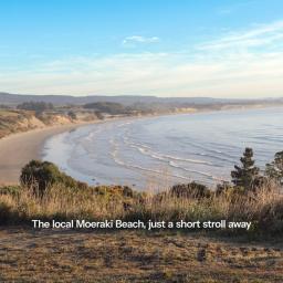 Just a short stroll to the beach, with access to the scenic coastline stretching past the iconic Moeraki Boulders and on to Hampden. Enjoy local fishing, diving and coastal walks.