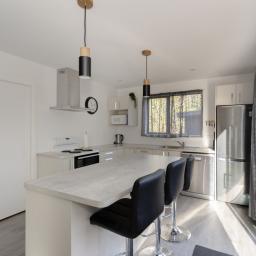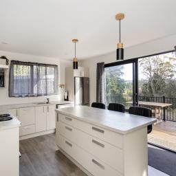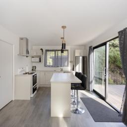 Designed for easy living, it features open-plan living, low-maintenance finishes, and is heated by a cosy pellet fire.
