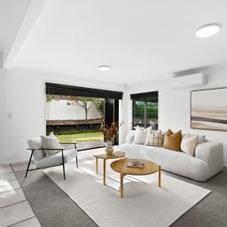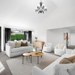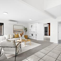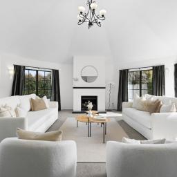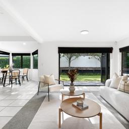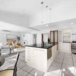 Designed for modern families and entertainers alike, the heart of the home is the chef's kitchen which is a true entertainer's dream. With abundant workspace and seamless flow, it overlooks one of the two spacious living areas and connects effortlessly to a sun-drenched private patio via classic French doors.