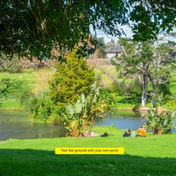 - Expansive parklike grounds with a large recreational pond