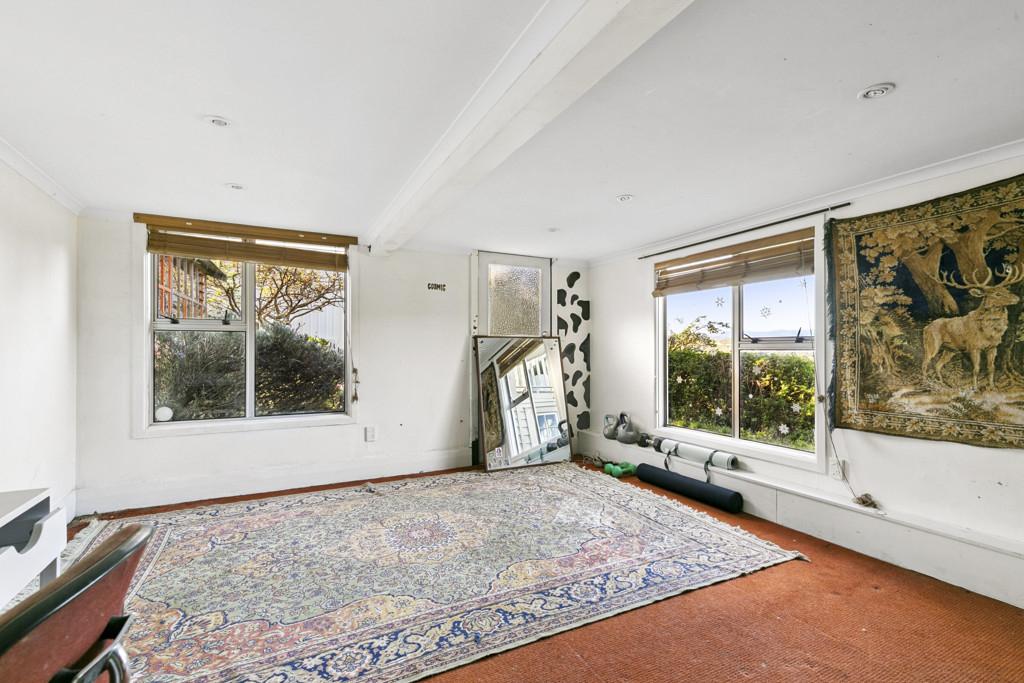 Tastefully renovated and refurbished in the early 2000s, although in need of a new roof and some remedial repairs, its many features include: three bedrooms, plus an office/games room/fourth bedroom, a modern kitchen with open plan living and dining area, a separate sunroom, one bathroom, two toilets, a large artists studio or shed and a very large private section with dual access, enabling you to further develop the 1002sqm section if desired.