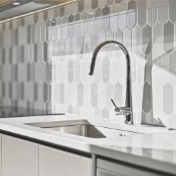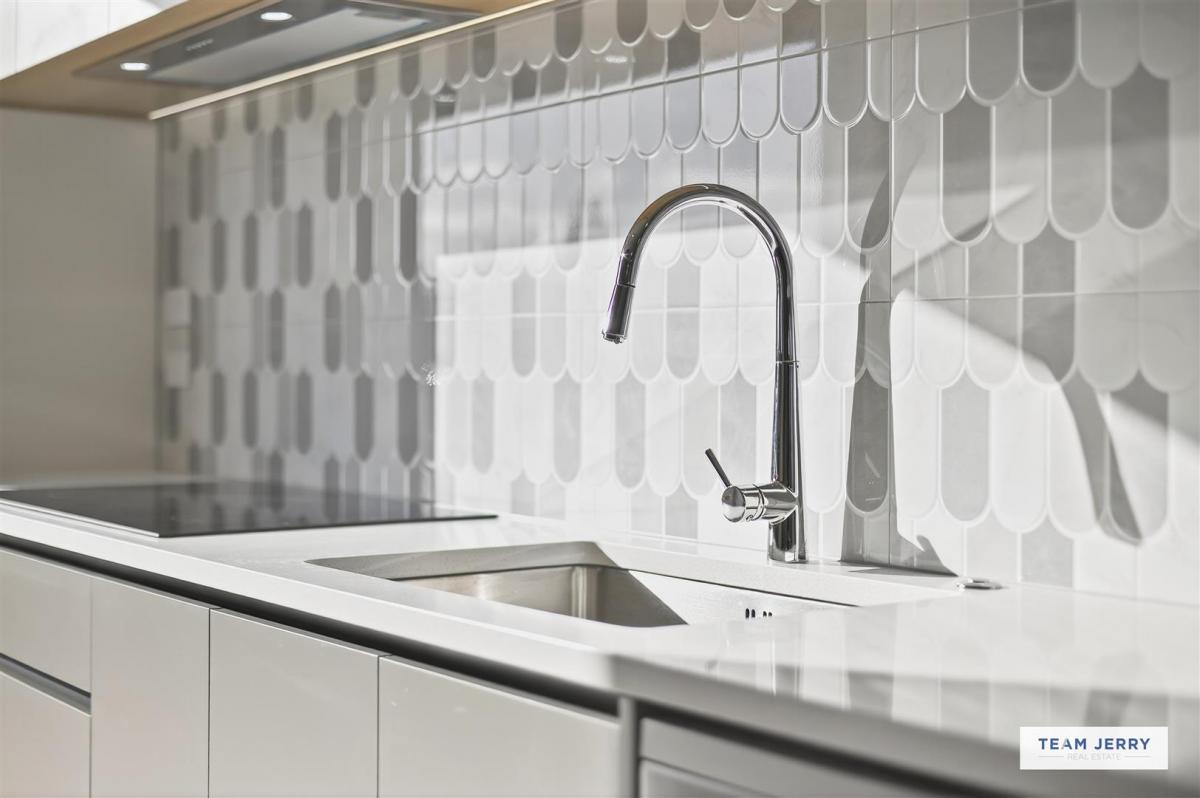 - Well-appointed kitchen with feature cabinetry & stylish tiled splashback