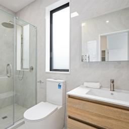 An intercom system, a ducted central heating and cooling system, and underfloor heating in the bathrooms