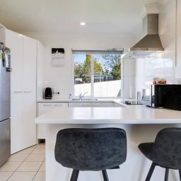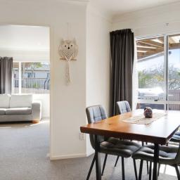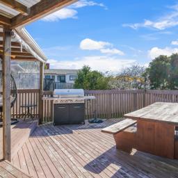 Inside, a cosy living room offers a relaxing retreat, while the open-plan kitchen and dining area provide a bright, functional space for everyday life. From the dining room, step straight onto a generous elevated deck that soaks up the sun all day - an ideal spot for morning coffee or weekend gatherings.