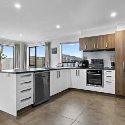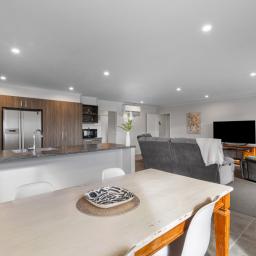 A very practical functional and user friendly floor plan, the generous kitchen offers plenty of cupboards and storage and room for the double refrigerator too. Fabulous spacious plan dining/living areas are sun soaked offering additional warmth, double glazed of course! Ranch slider off living area to north facing courtyard