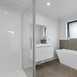 Main bathroom with shower, bath and both bathrooms have shower domes. Internal access garaging with laundry area.