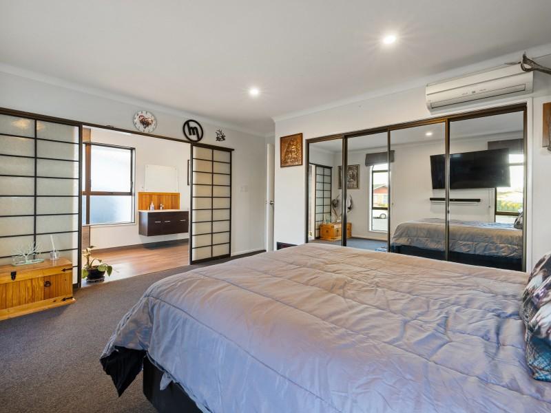 Three double bedrooms plus a versatile office/2nd living area. Master suite enjoys a heat pump, and an oversized ensuite featuring a walk-in shower. The main bathroom is spacious and practical with a shower and toilet.