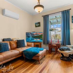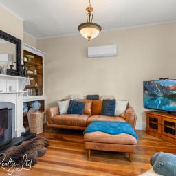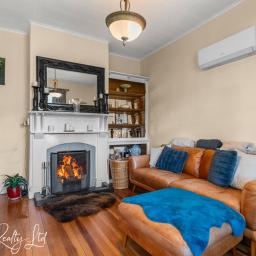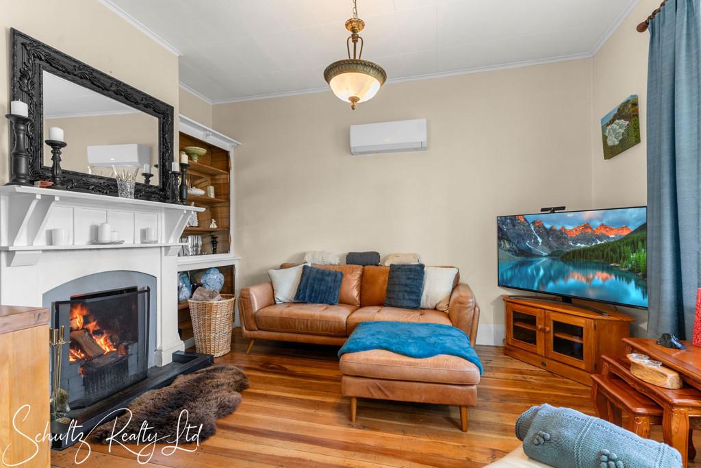 Step inside and you'll be welcomed by a cozy separate lounge, complete with double-glazed joinery for warmth and peace and quiet. An open fireplace adds a touch of charm, while original Kauri flooring and a heat pump round out the comfort.