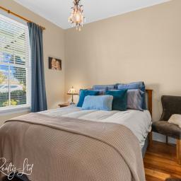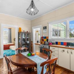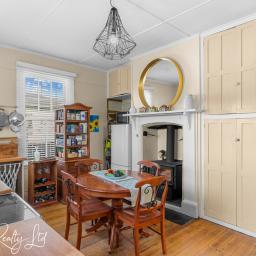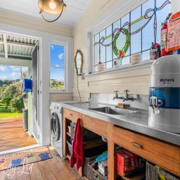 The open-plan kitchen and dining area is light-filled and inviting, featuring a second wood burner and a large oven-perfect for relaxed family meals or entertaining friends. This charming home offers three bedrooms, the master also featuring a double glazed window and a spacious bathroom that works well for the whole family. You'll also find a separate laundry with a stunning stained-glass feature window and plenty of room for daily chores.
