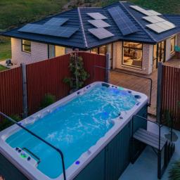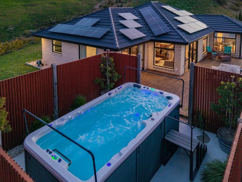 The swimspa is a standout – part pool, part spa – perfect for relaxing, entertaining, or both. Add in 23 solar panels with a 12.8kw battery storage, ducted heating throughout the home, and you’re comfortable all year round without worrying about big power bills.