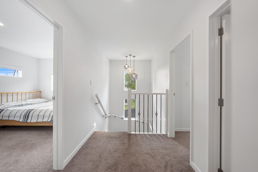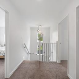 • Stairwell with hanging feature lights, casting warmth and joy through windows