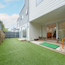 • North-facing backyard connects effortlessly to both living and dining through sliding doors, perfect for gatherings or quiet practice golf swings