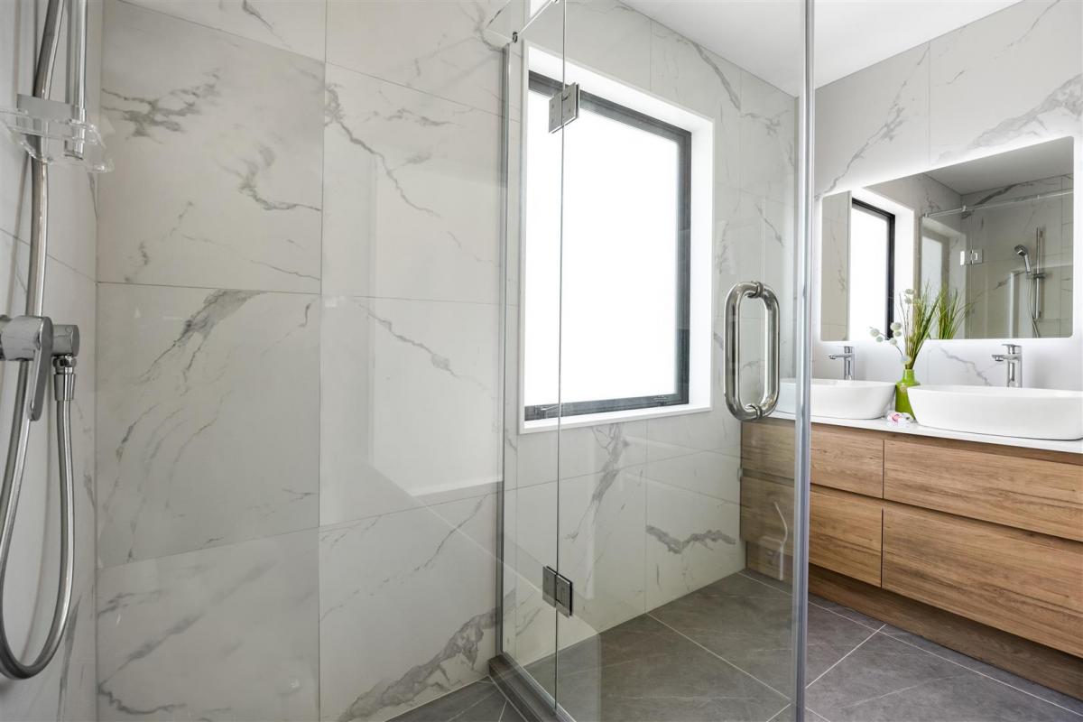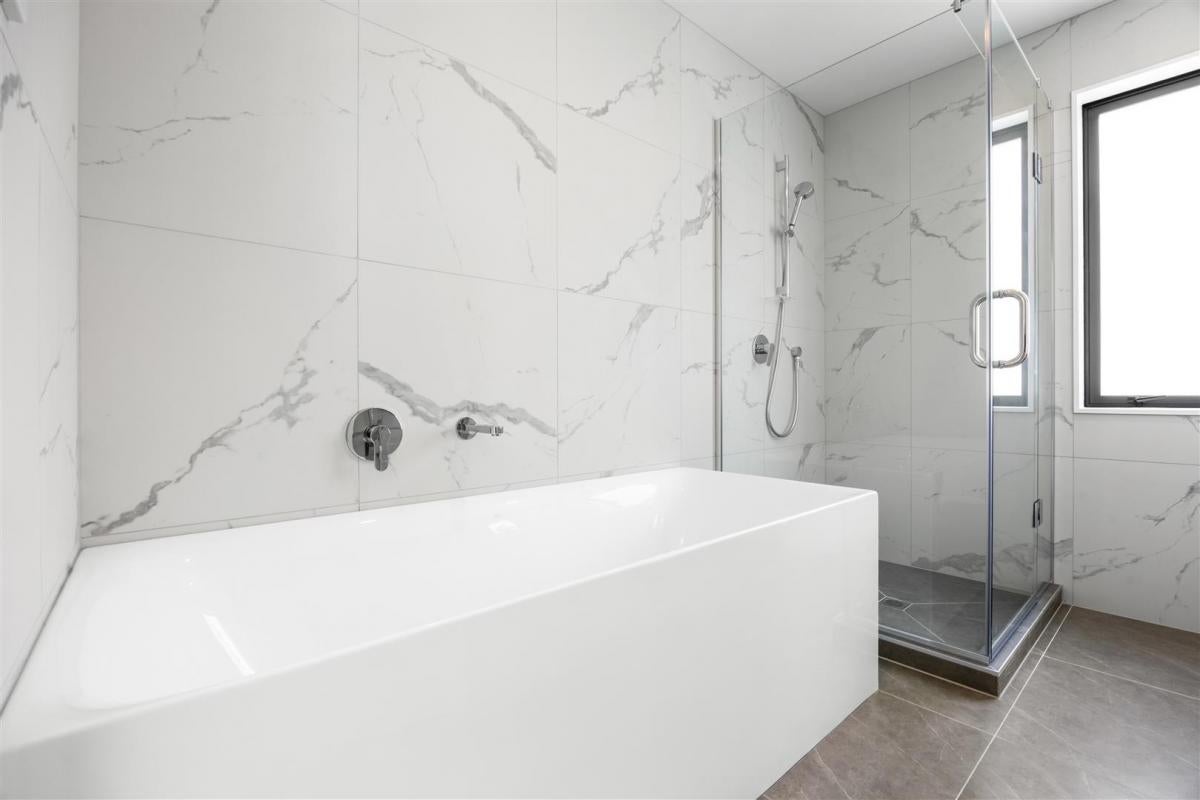 The ground floor features a stylish kitchen with gas cooktop, a double sink, and ample storage, seamlessly flowing into the dining area. A separate lounge at the rear offers a private retreat, complete with air conditioning and sliding doors that open onto a sun-drenched deck and backyard, perfect for entertaining or unwinding. For added convenience, this level also includes a guest toilet, an internal-access garage with a laundry area, and a master suite with its own ensuite, making it ideal for multi-generational living or accommodating guests.