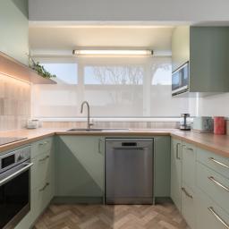 The stylish designer kitchen makes daily cooking a breeze, and the bright, cheerful interiors create a warm and inviting atmosphere. Stay cozy all winter with an eco-friendly wood burner!