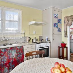 Traditional in layout, the combined kitchen/dining area sits on the east side of the home. The space has been updated to include a dishwasher, with polished timber flooring and a generous deck off the kitchen and master bedroom, accessible via well crafted French doors; this is a real suntrap. Separate lounge room with a heat pump, a cosy space for relaxation. Three double bedrooms, with a wet area and a combined bathroom.
