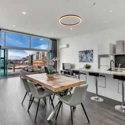 Perched on the top penthouse level of 16/137 Quay Street, this renovated two-bedroom apartment is a rare gem that captures the very best of Auckland's city living. With both east and west aspects, you'll wake up to golden sunrises over Rangitoto and wind down to glowing sunsets across the harbour.