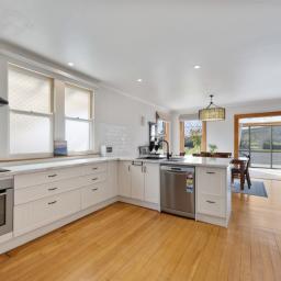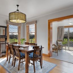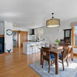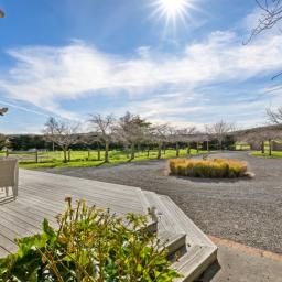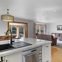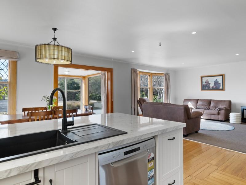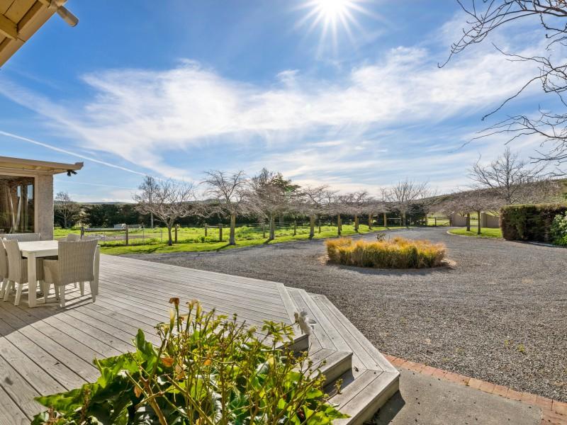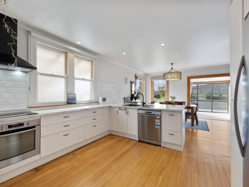 The home features three bedrooms, a study, two versatile rumpus rooms, and both an updated kitchen and modernised bathroom-blending everyday practicality with timeless rural charm. A log fire keeps the interiors warm and welcoming, while a sunny north-facing deck offers the perfect spot to unwind or entertain. Mature hedges and secure fencing surround the property, creating privacy and shelter along this quiet country road.
