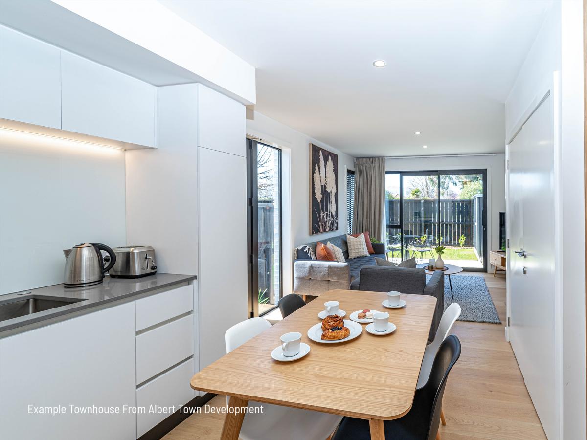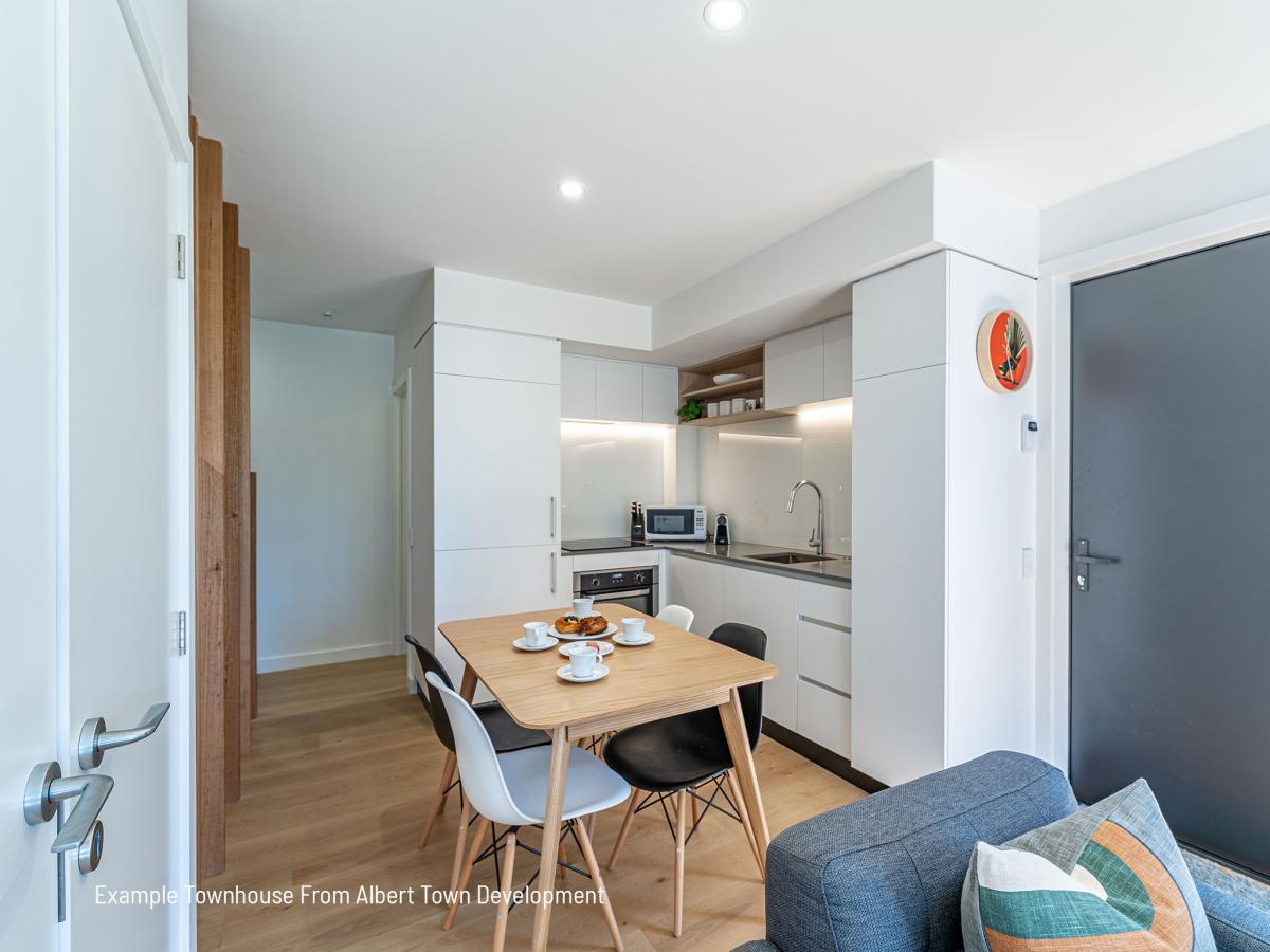 Stage one includes 23 townhouses, including five three-bedroom options, each thoughtfully planned with open-plan living that flows into a full-sized kitchen and generous storage. The backyard opens directly off the living space, perfect for relaxing in the sun.