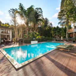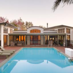 At the heart of the estate, the sparkling in-ground pool creates a holiday vibe every day of the week. Surrounded by sun-soaked entertaining spaces and lush landscaping, it's a home designed for long summer afternoons, family gatherings, and effortless indoor-outdoor living.