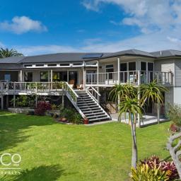 Set on an easy-care section with manicured lawns, beautiful palms and mature trees, ornamental plantings, veggie pad and a selection of fruit trees. With the golf course forming the rear boundary, the property is ideal for keen golfers, while the beach just beyond offers easy access to swimming, surfing, fishing, and scenic coastal walks.