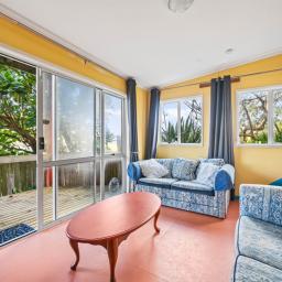 Welcome to your coastal escape - just 200 metres from the golden shores of Baylys Beach. Perched in an elevated position with sweeping Tasman Sea views, this fully furnished 1950s gem offers relaxed beachside living with room for the whole crew.