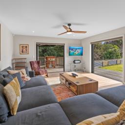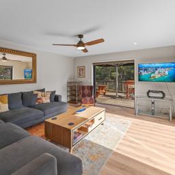 Step outdoors and you’ll find a private lawn and a superb entertaining area – the ideal setting for summer barbecues, evening drinks with friends, or simply unwinding after a day on the water. Solar panels add energy efficiency and peace of mind, while the double garage offers secure storage for vehicles, paddleboards, jet skis, and all the gear that comes with coastal living.