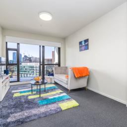 Measuring approximately 37sqm and featuring a spacious balcony, this apartment enjoys a north-facing aspect that ensures abundant natural light throughout the day, along with views extending toward the iconic Sky Tower.