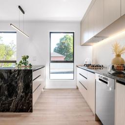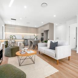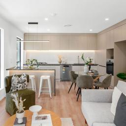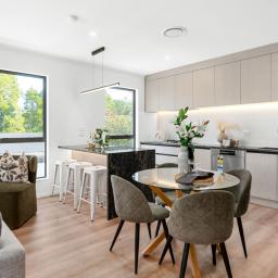 Step inside to a residence where refinement meets comfort. Plush wool carpet underfoot, central air-conditioning for year-round ease, tiled bathrooms with luxury fittings and under-tile heating, and an elegant open-plan layout create a home of quiet sophistication. The kitchen is the natural centrepiece - stone surfaces, premium appliances, and sleek cabinetry - while the living space extends to a balcony that frames the river backdrop, the perfect vantage point for glowing evening skies.