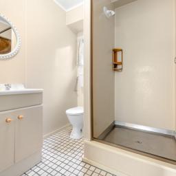 Downstairs, a large double bedroom with big sliding doors opening to the sunny, north-facing section, offers great indoor-outdoor flow and flexibility. A third bathroom downstairs adds even more convenience.