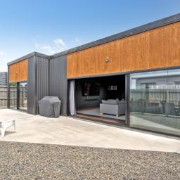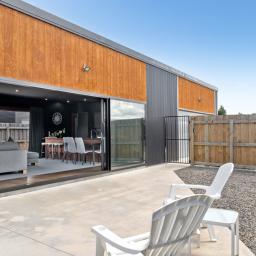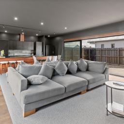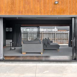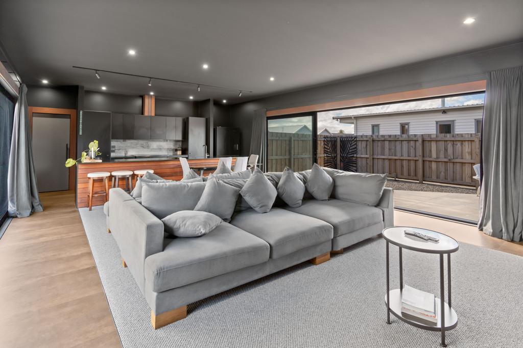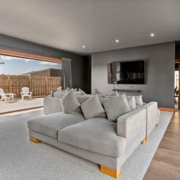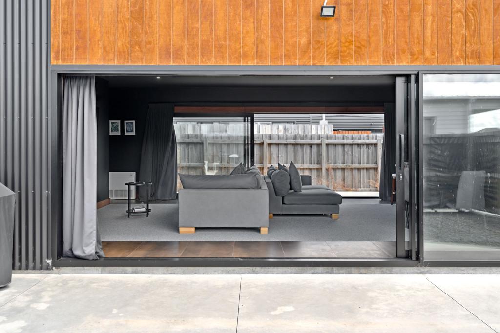 Step inside and be captivated by a thoughtfully designed open-plan layout that perfectly balances modern living with elegant entertaining. Bathed in natural light, the heart of the home boasts oversized stacker doors on both sides of the living areas and a soaring high-stud ceiling, creating an exceptional sense of space and seamless indoor-outdoor flow.